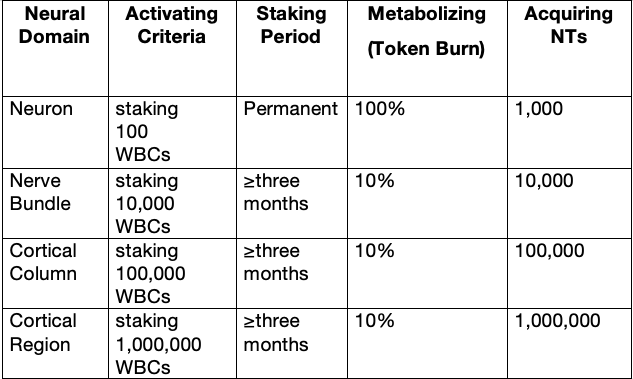 - When initiating a stake directly in Neural Bundles, Cortical Column, or Cortical Region, the WBC used for the stake will be metabolized (burned) by 10%.