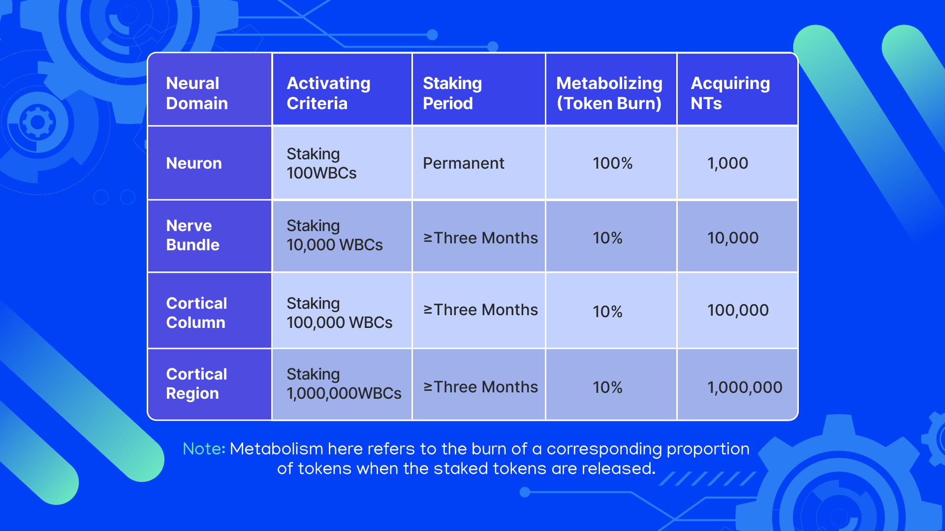 Note: Metabolism here refers to the burn of a corresponding proportion of tokens when the staked tokens are released.